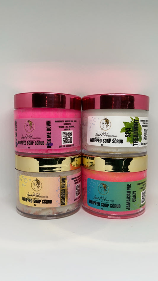 Our WHIPPED SOAP SCRUBS are a luxurious blend of creamy cleanser and gentle exfoliant, designed to cleanse, polish, and pamper your skin in one simple step. Made with skin-loving oils and butters, each scrub creates a rich, foamy lather that removes dead skin cells while leaving your skin soft, smooth, and hydrated. The whipped texture feels indulgent, making every shower or bath a spa-like experience. Perfect for all skin types, our scrubs reveal a healthy glow without stripping your skin—because self-care should feel as good as it looks.